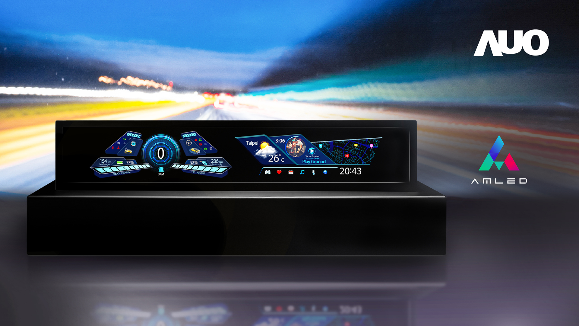 AUO applies proprietary AmLED technology to large-size future automotive displays, materializing the vision of a smart cockpit |